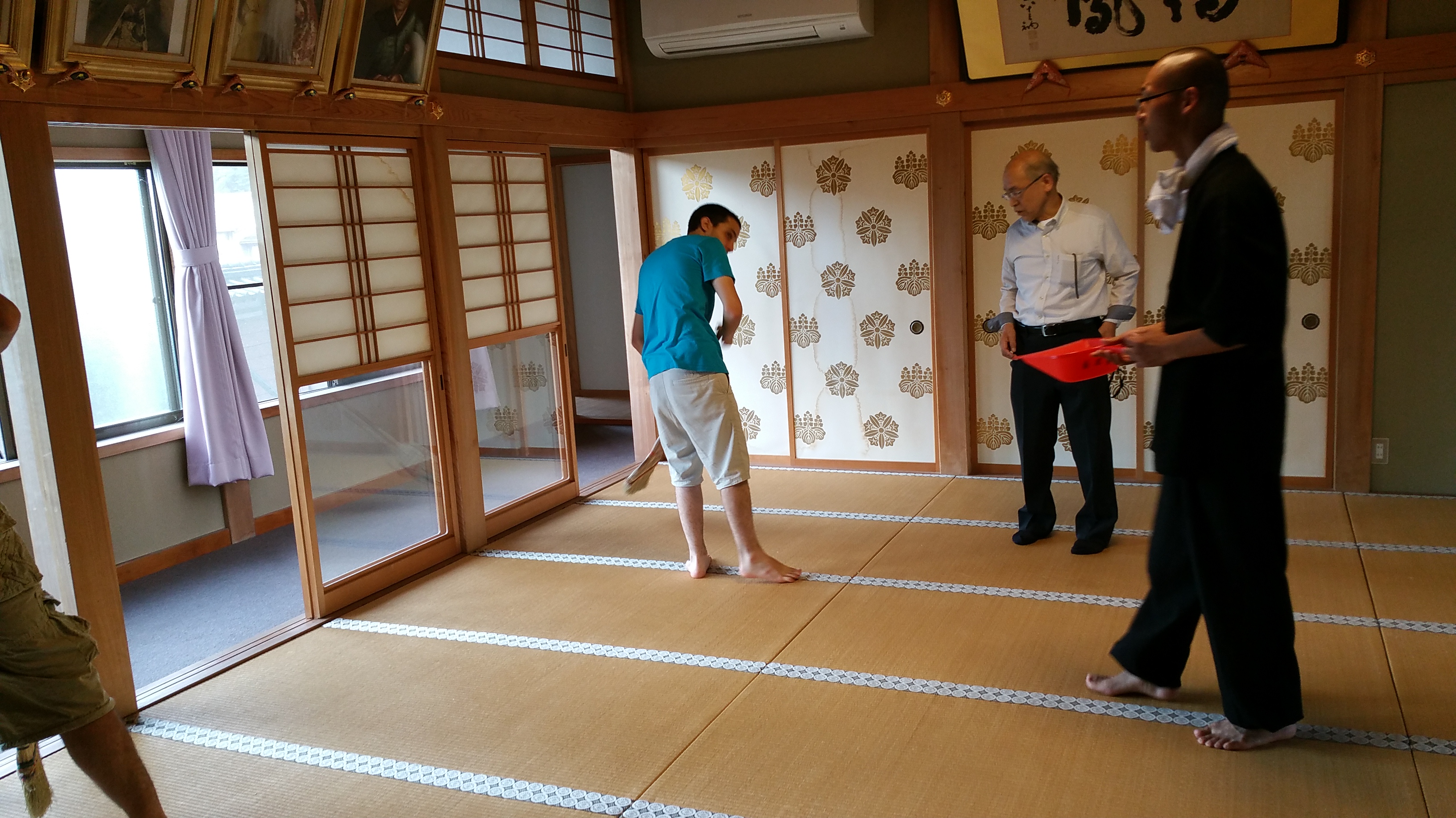 הדס: התעוררנו בארבע בבוקר, קיפלנו פוטונים וטפפנו אל חדר המדיטציה. במשך שעה תרגלנו “זא-זן” (ראו פוסט קודם). נעלנו נעלי בית, נכנסנו לחדר המדיטציה, כופפנו את כרית המדיטציה -זאבו- חלצנו נעלינו מעל רגלינו, התיישבנו עם הפנים כלפי המרכז, סיכלנו רגליים והסתובבנו כלפי הקיר. לצללי התוף (למעשה 108 פעימות, כמספר הפעמים שבודהה התעורר), בשקט מופתי בהינו כמטר מאיתנו כלפי קצה הטאטמי, כל אחד בראשו שלו, כאשר אחד הנזירים הבכירים מסתובב מאחורנו עם מקל בידו. לפתע, ישנו רעש של הצלפה, הנזיר הצליף על כתפו הימנית של כל אחד מהמתרגלים. הפלא ופלא, המכה לא כאבה אלא להיפך, שיחררה את הגב והכתפיים, והמשכנו לעוד חצי שעה מדיטציה.