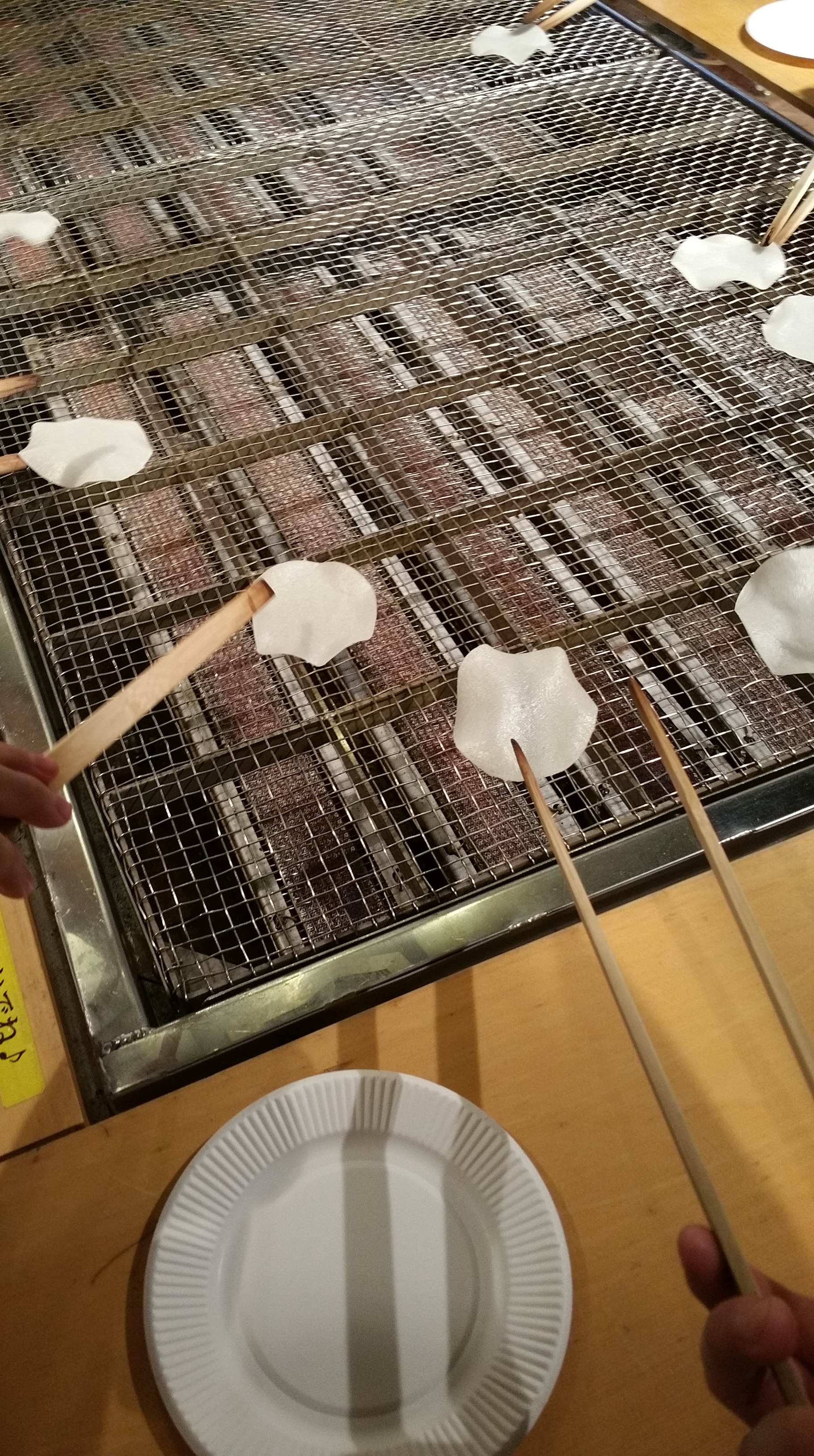 מיכאל: ה”סנביי” הנו חטיף יפני אפוי, העשוי מאורז. המארחים שלנו הובילו אותנו לאחת משלושת החנויות באזור המתמחות בהכנתו. ישנם רק שלוש בכיוון שקשה להכין הרבה בתהליך לא-תעשייתי. נאמר לנו שאדם אחד יכול להכין מקסימום 1500 חטיפים שכאלו ביום בטמפרטורה של 700 מעלות. בסדנה עצמה נעמדנו מול רשת שמתחתיה היו גחלים רותחים, וניתנה לנו חתיכה קטנה של קמח אורז, אותה היינו צריכים להפוך על הרשת כל כמה שניות. בסופו של דבר הקמח הלבן הפך לזהוב, ולאחר שטבלנו אותו בסויה, אכלנו את פרי עמלנו וזיעתינו(למרות שאצלנו הטמפרטורה שם הייתה “רק” 300 מעלות!).