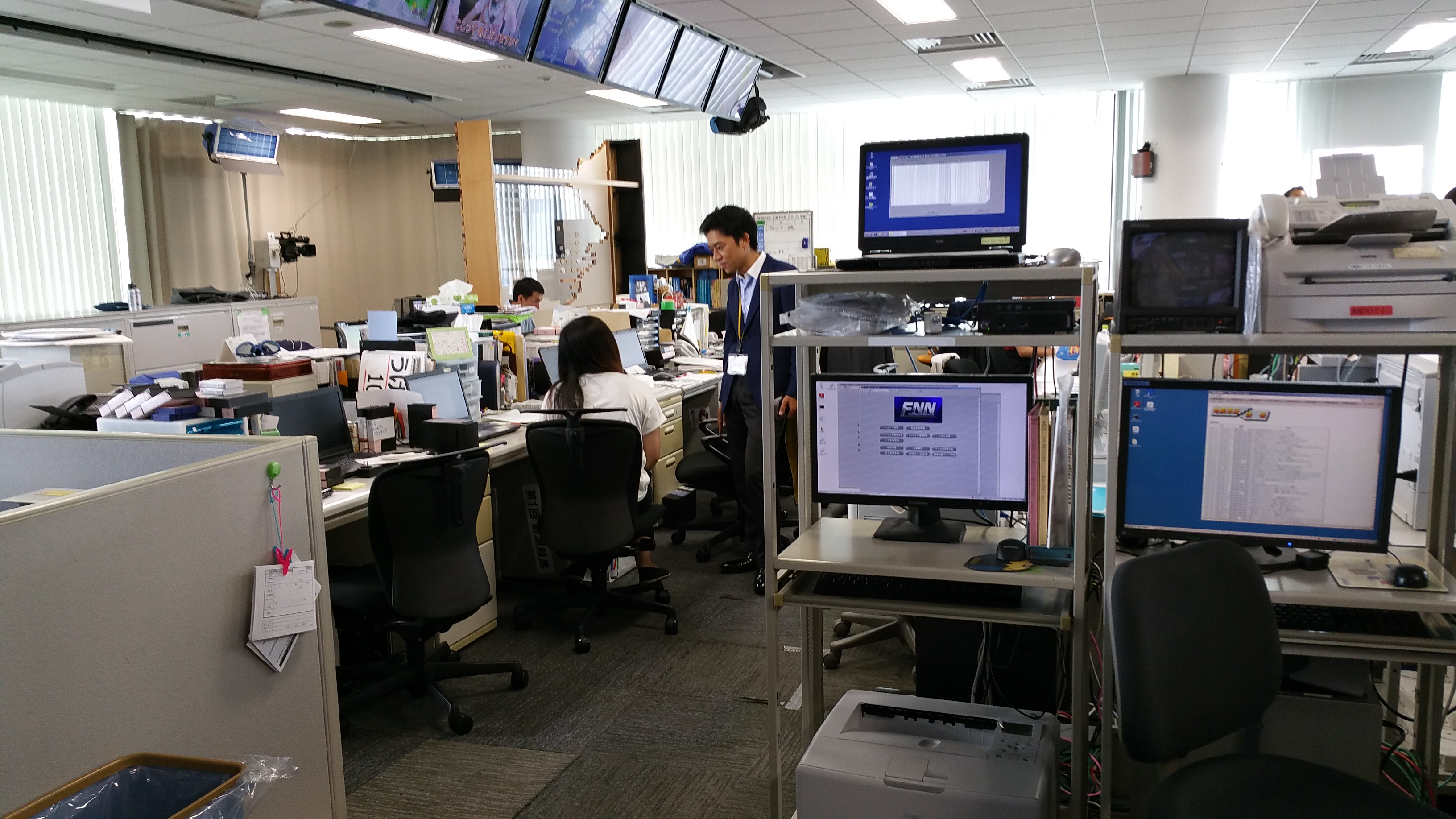 לאחר מכן, נסענו לבקר בחברת התקשורת והטלוויזיה “אן-אס-טי”, תחנת הטלוויזיה המקומית של ניגאטה, אשר נמצאת על גדת נהר (והנוף מחדר הישיבות עוצר נשימה). הצלמים, אשר ליוו אותנו עוד מאתמול, שייכים לאותה התחנה. במהלך הסיור ראינו מספר סטים, כמו סט של תוכנית ילדים ואולפן החדשות (הופענו בטלוויזיה המקומית כשאנחנו נמצאים באולפן החדשות) ולמדנו על האופן שבו הם משדרים. יתרה מכך, ראינו שוב מקרוב כיצד בנויה חברה יפנית – בה כל העובדים יושבים יחדיו באותו משרד גדול, מסביב למספר שולחנות, ביחד עם הבוס. פרט מפתיע נוסף שהיה, ונראה שקיים רק ביפן, היה “עמדת רעידות אדמה”, אשר בה יש מצלמה לשידור חירום באם יש רעידת אדמה.