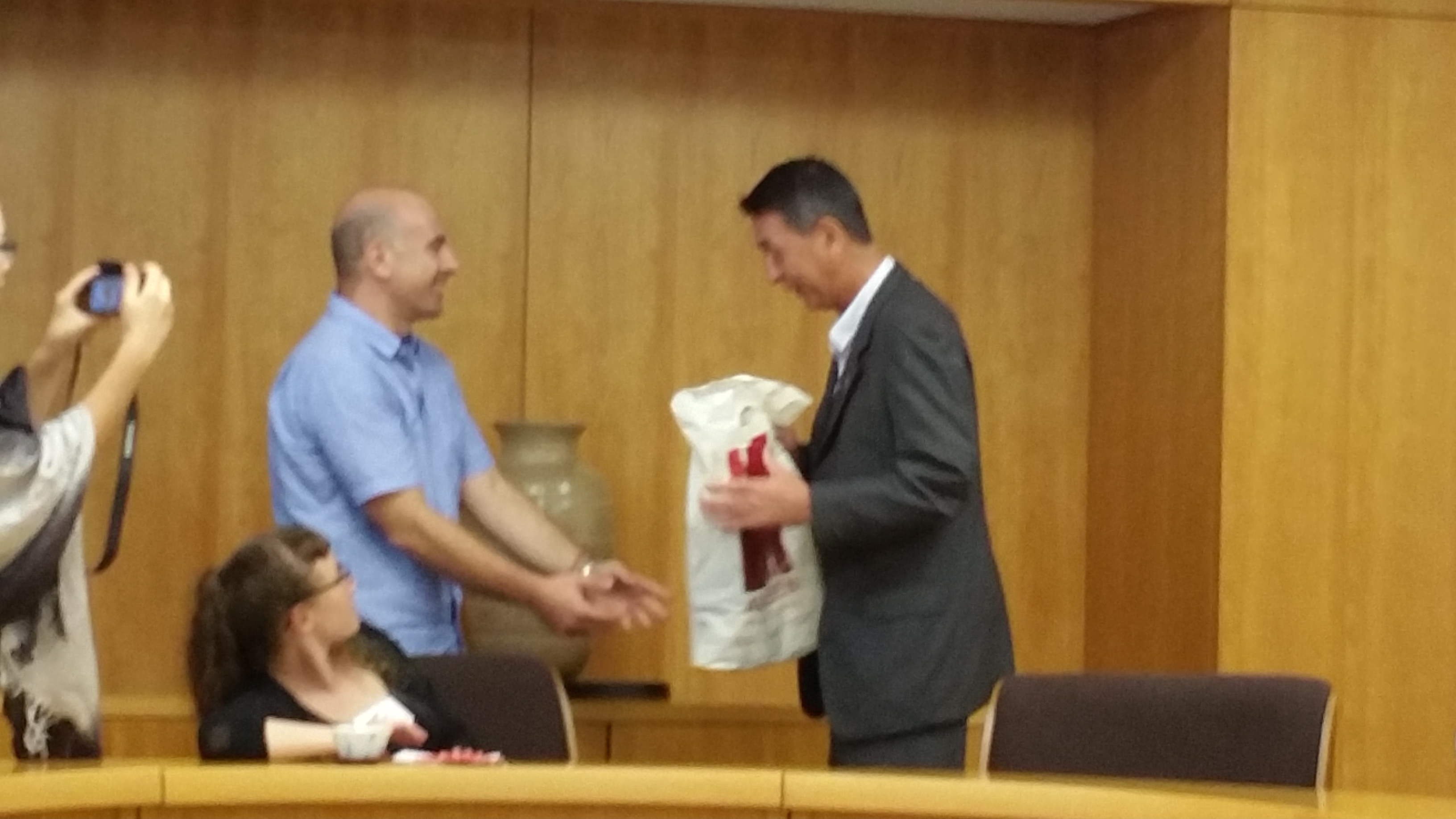 כשסיימנו את ביקורנו באקווריום, נסענו לפגוש את ראש העיר של ניגאטה, מר שינודה, אשר ממונה על עיר כה שלווה ונפלאה, שלא זוכה להרבה תיירים. בכניסה לבניין העירייה, הופתענו לראות את דגל ישראל מתנוסס לצד דגל יפן. קבלת הפנים הייתה מאוד מרשימה – כל העובדים עמדו לכבודנו ובירכו אותנו, בעוד אנו צעדנו לעבר חדר הישיבות. בחדר הישיבות מספר סטודנטים הציגו את עצמם, ביניהם הדס, שירי, סבינה, איתי שיר ומיכאל. בסוף קיבלנו “אומיאגה” (מתנה קטנה), ויצאנו בהרגשה נפלאה.
