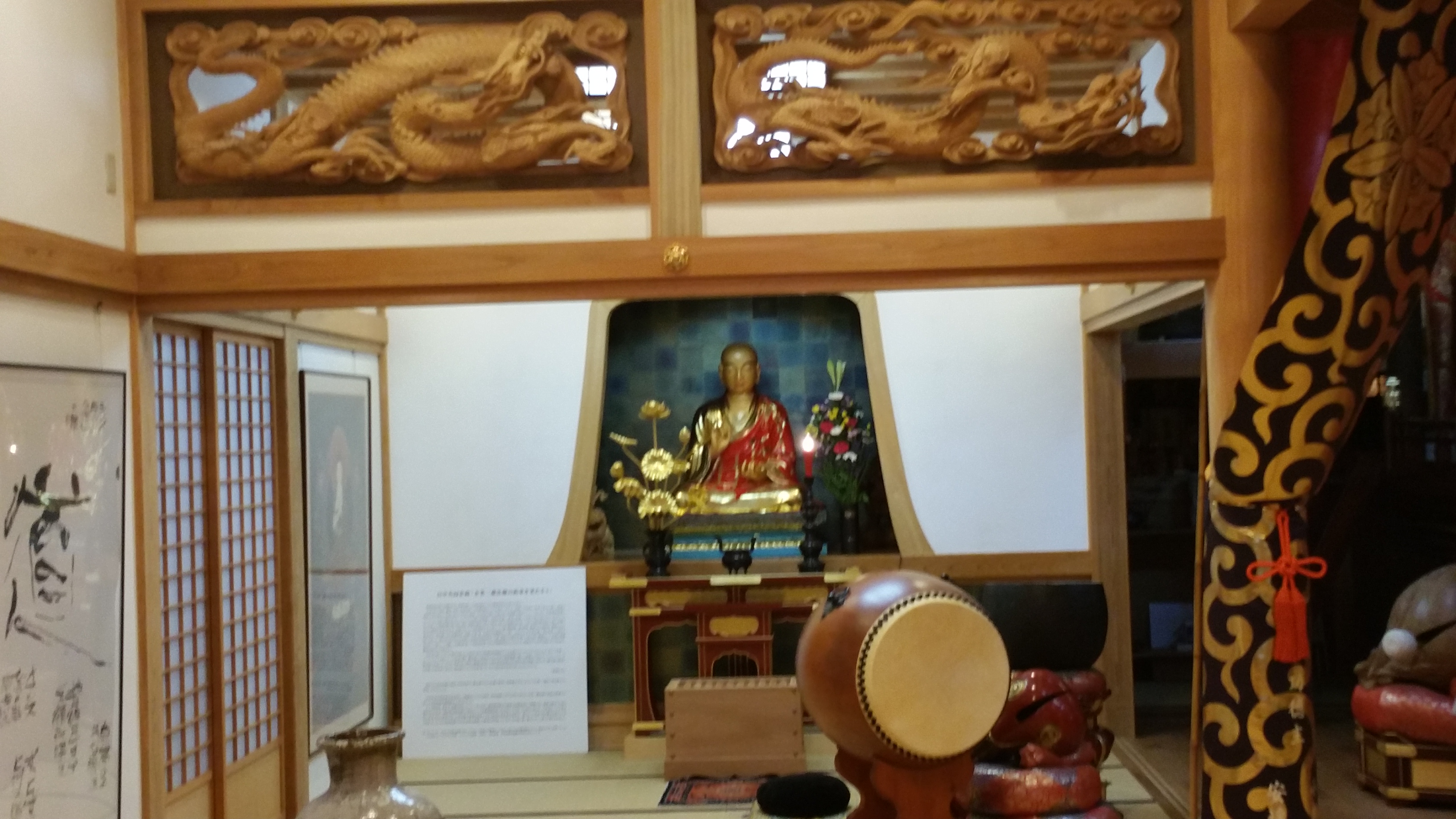לבסוף, לפני שנסענו לאכול בערב בבופה נהדר נוסף בחסות אוסודה-סנסיי, נסענו למקדש שבבעלותו. בשונה מהמקדש בו העברנו את הלילה הקודם, מדובר במקדש שהוא לא לימודי, אלא מקדש שהוא משרת את תושבי העיר. המקדש היה מרהיב ביופיו ובפאר שבו, ואוסודה-סנסיי היה נדיב מאוד וסיפר לנו אודותיו ואודות העיצוב שלו – כך למשל, למדנו שישנם חמישה גילופי עץ של דרקונים במקדש, שגולפו על ידי נגר מטויאמה (אזור שמפורסם בעבודות הנגרות שלו, מכיוון שבו קר מאוד והם היו צריכים למצוא מקור פרנסה שונה מחקלאות). אל נשכח, שזכינו לפגוש את משפחתו הקרובה, ואת אמו מאריכת הימים.