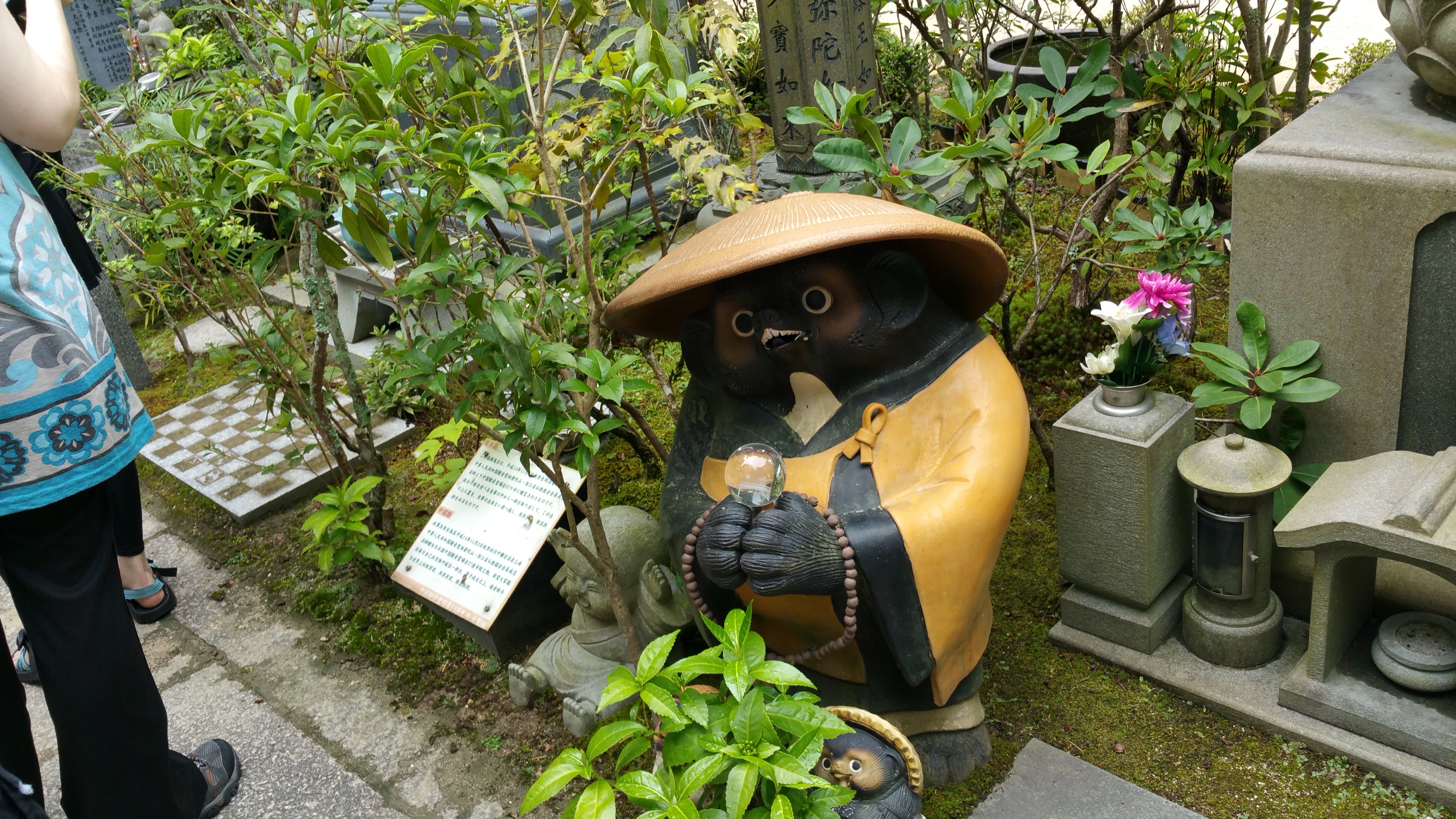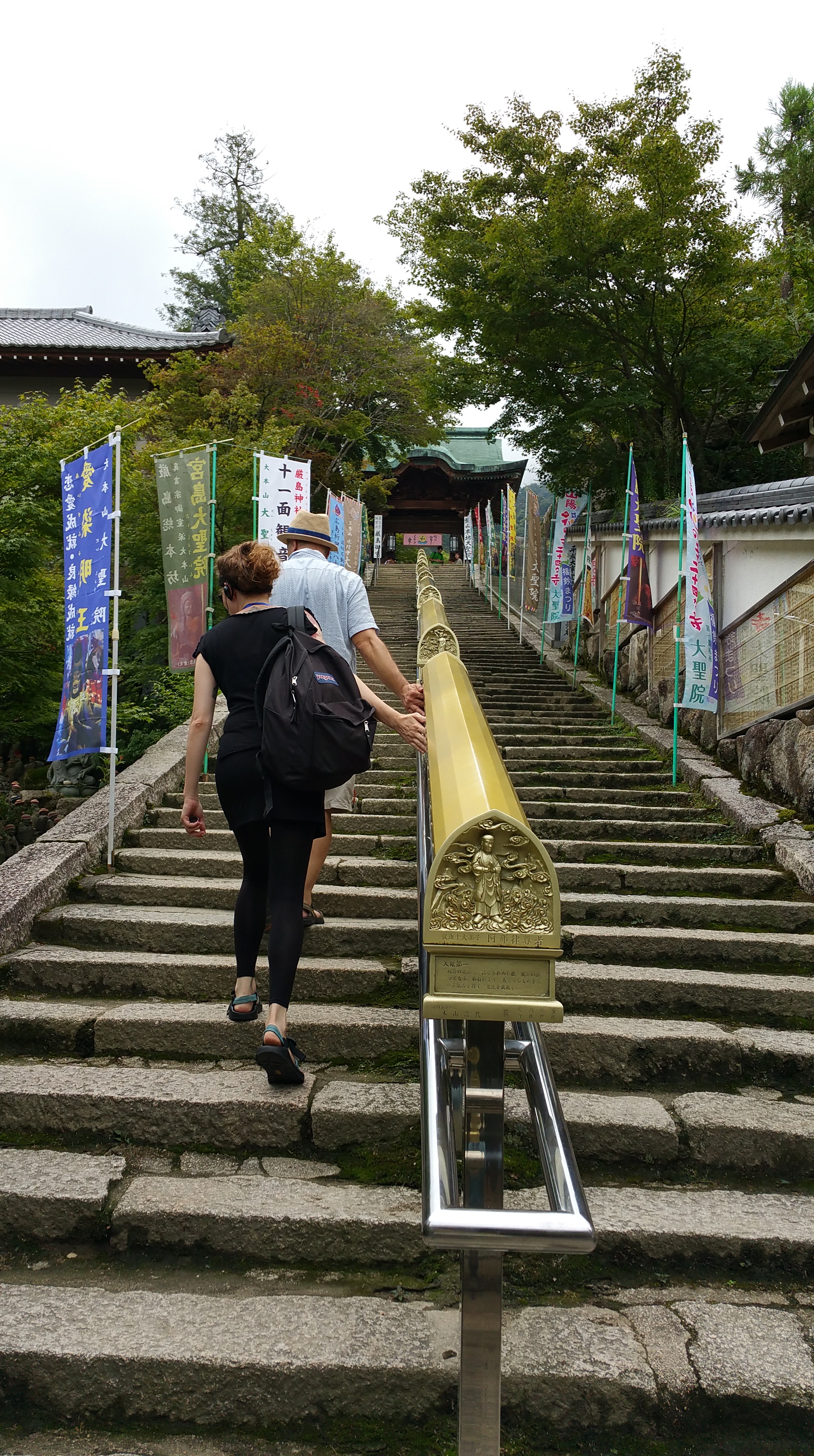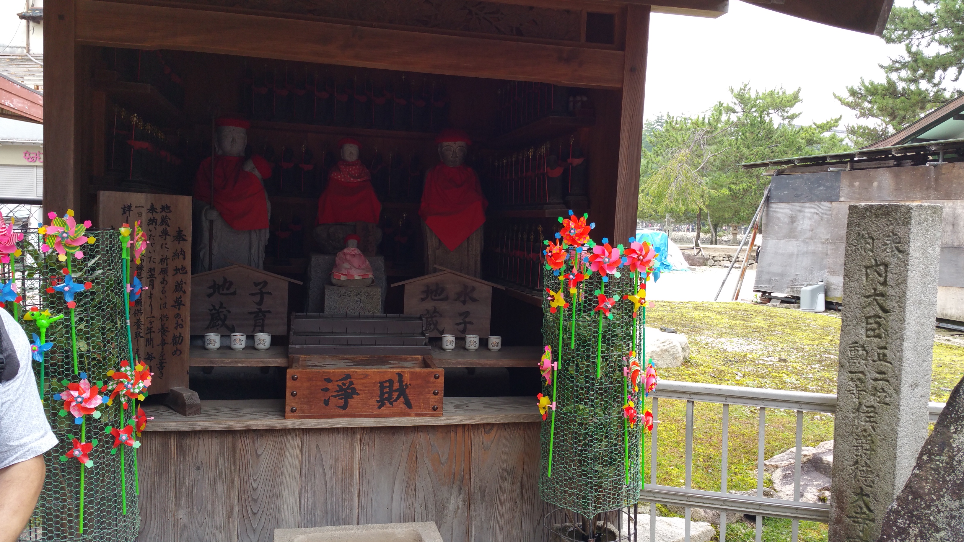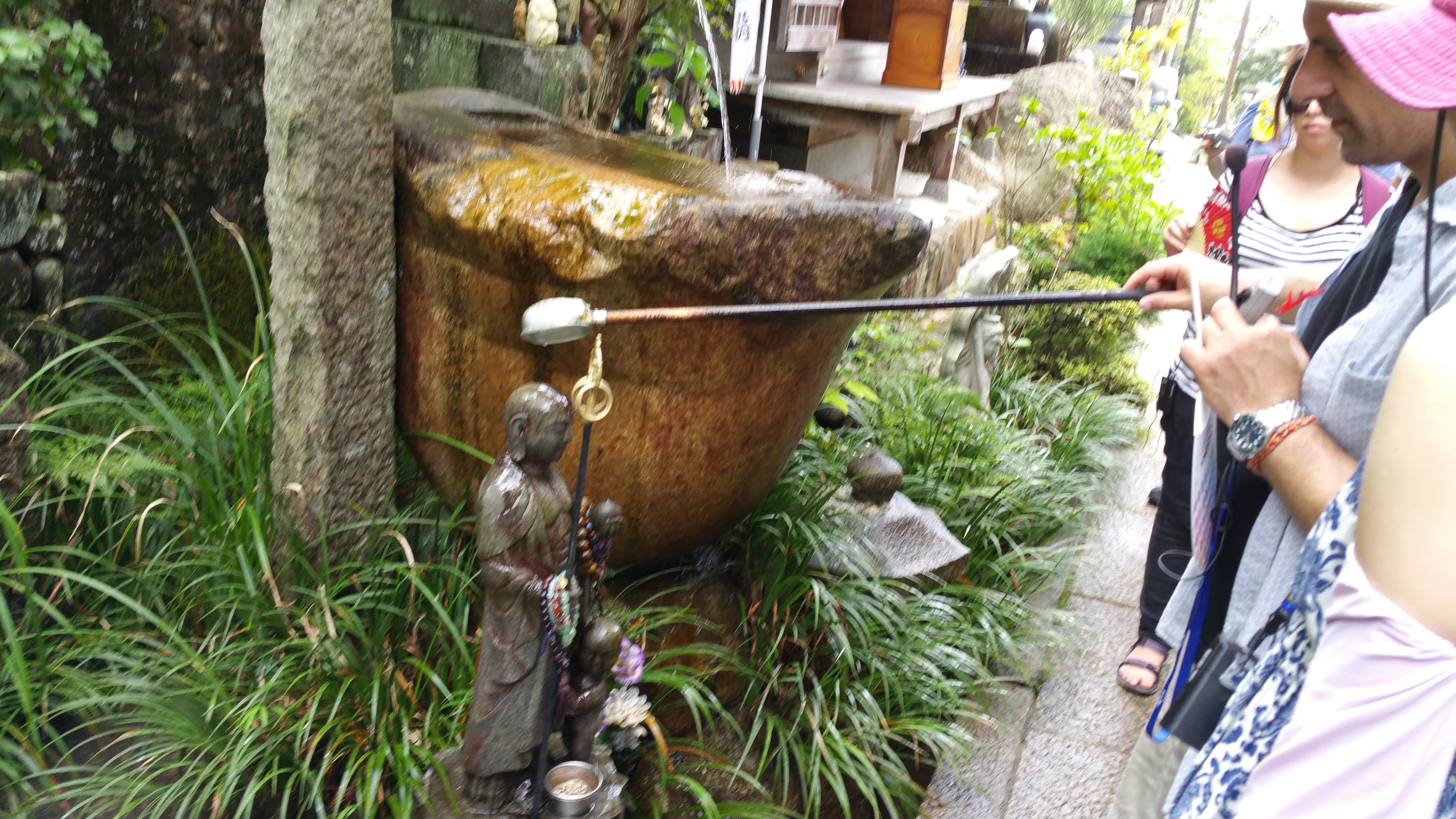 לאחר מכן המשכנו לטייל באי והגענו למקדש הבודהיסטי דיישה-אין של הנזיר קוקאי. קוקאי היה בין הנזירים המפורסמים ביותר של יפן, ומייסד דת השינגון. שינגון בודהיזם הוא זרם בודהיסטי והינו אחד מאסכולות הבודהיזם המשמעותיות יותר ביפן. הוא עלה במהלך תקופת הייאן (794-1185). כשטיילנו בסביבתו ראינו פסלים רבים של הבודהה וסמלים שלו, וכן של האל ג’יזו, אל בודהיסטי שתפקידו לשמור על ילדים, לשמש פטרון לתינוקות או פעוטות שמתו או של עוברים שמתו, אם בהפלה טבעית או מכוונת. פסליו מאופיינים בדמויות קטנות בעלות פני בובה ולרוב אנשי המקום קושרים להם סינר ו/או כובע אדום.