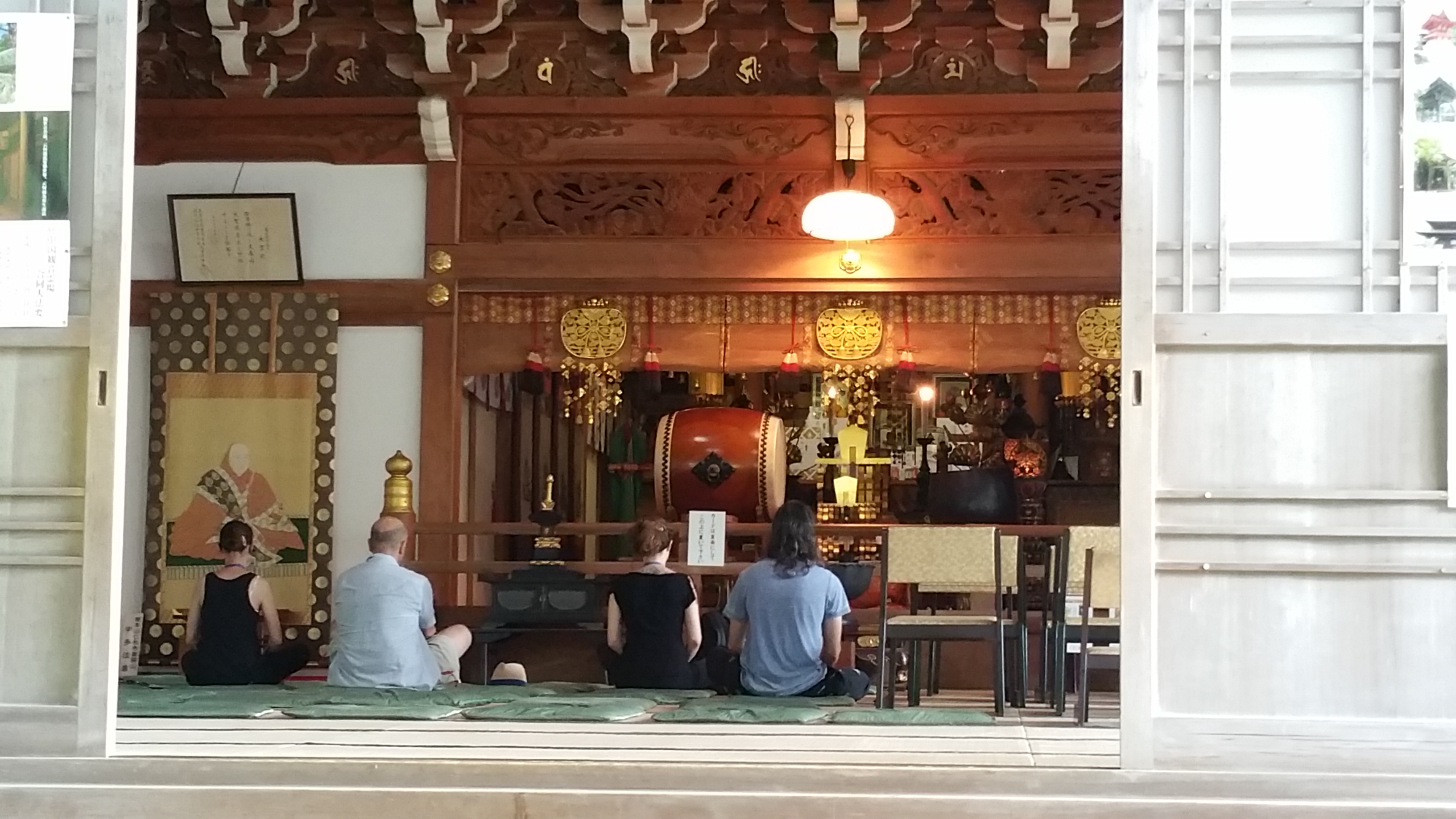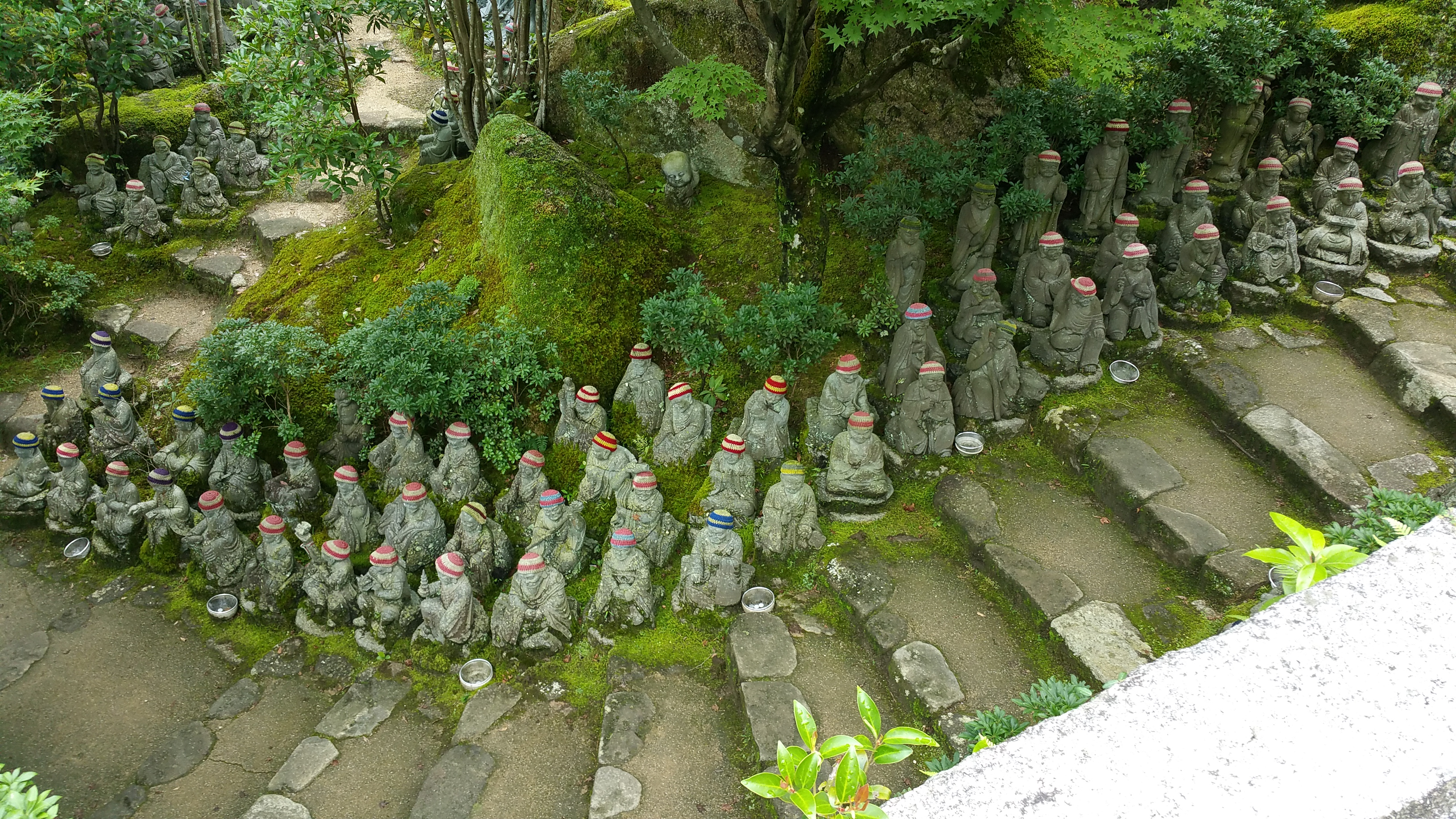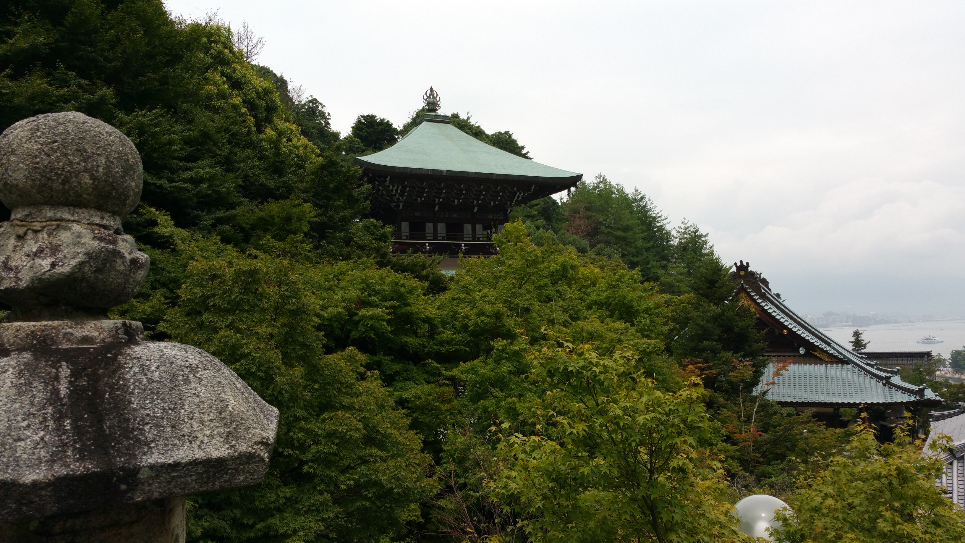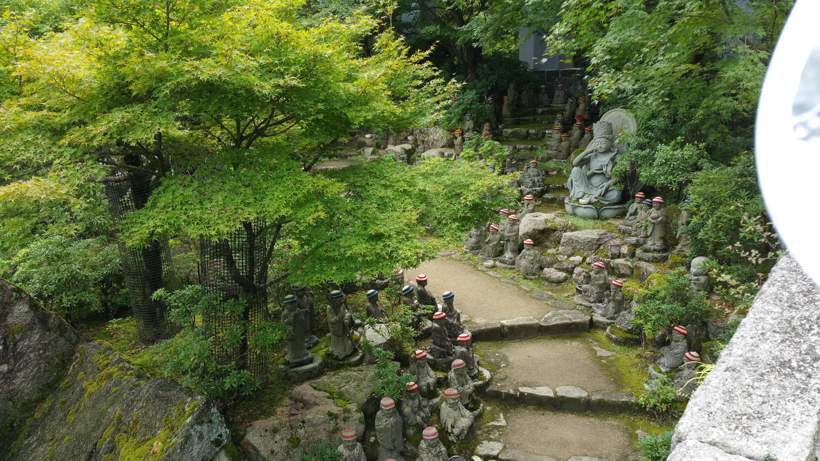 לאחר מכן המשכנו לטייל באי והגענו למקדש הבודהיסטי דיישה-אין של הנזיר קוקאי. קוקאי היה בין הנזירים המפורסמים ביותר של יפן, ומייסד דת השינגון. שינגון בודהיזם הוא זרם בודהיסטי והינו אחד מאסכולות הבודהיזם המשמעותיות יותר ביפן. הוא עלה במהלך תקופת הייאן (794-1185). כשטיילנו בסביבתו ראינו פסלים רבים של הבודהה וסמלים שלו, וכן של האל ג’יזו, אל בודהיסטי שתפקידו לשמור על ילדים, לשמש פטרון לתינוקות או פעוטות שמתו או של עוברים שמתו, אם בהפלה טבעית או מכוונת. פסליו מאופיינים בדמויות קטנות בעלות פני בובה ולרוב אנשי המקום קושרים להם סינר ו/או כובע אדום.