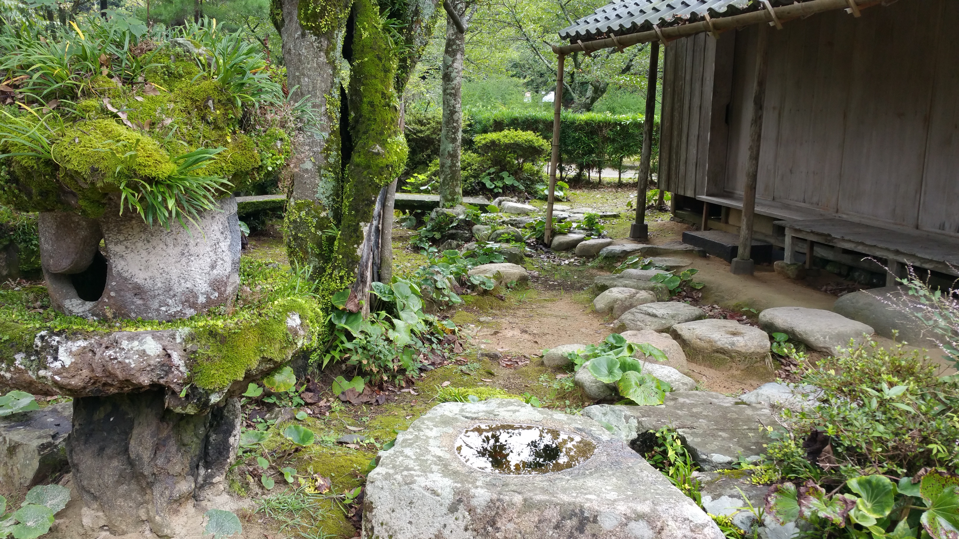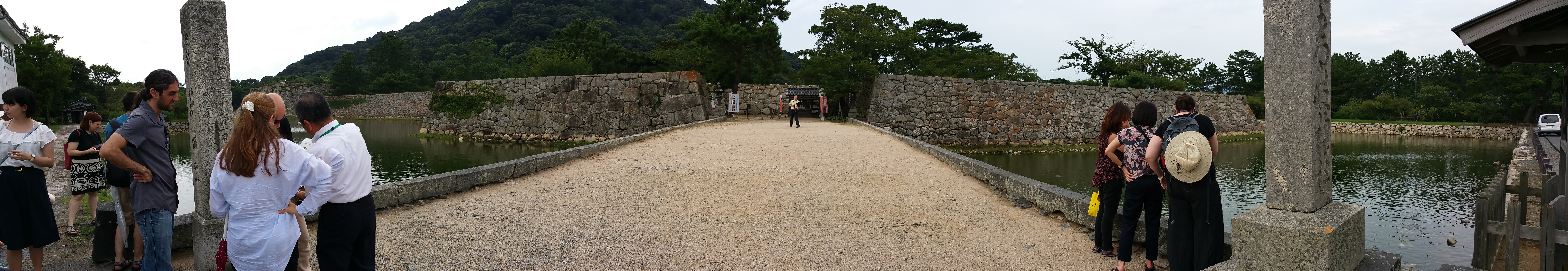 כשמדברים על חורבות טירת האגי, מדברים בעצם על מתחם שלם שהוא מין עיר קטנה לצד הטירה שדווקא ממנה השתמר המון. בכניסה אליה הגענו היה נהר יפיפה עם שלל דגים גדולים וצבעוניים שעקבו אחרינו (כנראה רגילים שזורקים להם אוכל), וצבי-ים אפריקאיים שנאמר לנו שיובאו ליפן והשתלטו על שטחי המחיה של הצבים המקומיים. המדריך שבא איתנו מהמוזיאון החל להסביר לנו על הטירה, גובהה ומדוע נהרסה. הטירה נהרסה בפקודה ומטרתה העיקרית הייתה הפגנת נאמנות לשלטון ולטענת המדריך גם בשל עלויות תחזוקה גבוהות. המתחם עצמו היה מאוד פסטורלי עם גנים יפים, מקדשים, בית תה – שניסים הסביר שכל האווירה הזאת נועדה כדי להכין אותך לכניסה לטקס התה בו. התרשמנו גם מעבודת הנגרות והטיח בבתי העץ העתיקים (“הטובים לטייח”). לפני שעזבנו, מדריכנו האדיב הלך ושאל במיוחד גנן שעבד במקום היכן נמצא צמח ה”האגי” (להיות בהאגי בלי לראות את צמח האגי?) ומצאנו אותו (לצערנו לא בתקופת פריחתו). ביציאה הבטנו שוב בדגים המהפנטים שפשוט קראו לי לקפוץ למים, למזלי לא הקשבתי להם, כי גם-ככה אין פה איפה לעשות כביסה.