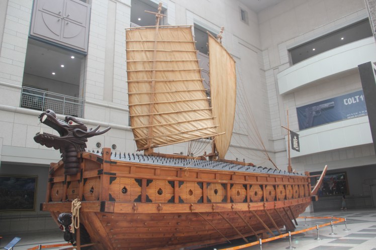 לאחר הנחיתה, נסענו ברכבת לקניון אייפארק שם פגש אותנו הכומר פארק, אשר סייע לסמינר ותרם מזמנו גם בשנים קודמות. הוא הסיע אותנו ברכבו למוזיאון הנצחת מלחמה, שם תאיר העבירה הצגה קצרה ואינפורמטיבית על המקום שכללה רקע על מלחמת קוריאה כמו גם הסבר על האולמות השונים הקיימים במוזיאון אותם הכירה מניסיון אישי מביקוריה הקודמים בו. דני דיבר על ניסיון הפלישה של יפן בתקופת הידאיושי וציין כי ההבדל בין הקוריאנים והיפנים באותה מלחמה מבחינה אסטרטגית נבע מכך שהידאיושי התייחס לספינה כפלטפורמה עבור הסמוראי להלחם בלבד, ולפני כן אף תפס פיראטים יפנים והביאם ליפנים שהוציאו אותם להורג במסגרת מסע ומתן שבמהלכו הוא ניסה לגרום להם לתת לו את צבאם כפי שעשה לפני כן לדאמיו ביפן ותכנן אף לעשות את אותו הדבר בסין. המשמעות של הרג הפיראטים למעשה היא שהם היו אלה שהתמקצעו באסטרטגיית לחימה בים ועל כן המחסור בהם היה למעשה חיסרון בצד של הידאיושי, כשמנגד הצבא הקוריאני היה בקיא בים והגנרל יי סונשין ידע לתמרן ולהשתמש במזג האוויר, בזרמים ותנאי הים ככלל וזה היווה עבורו יתרון גדול באותו קרב מול הידאיושי .